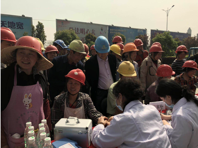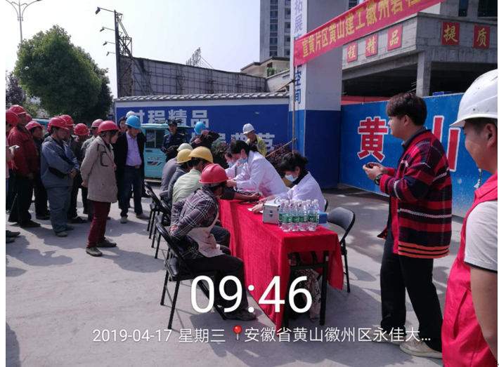 2019年4月17日上午9時,黃山建工集團(tuán)承建的徽州碧桂園德源項(xiàng)目工程東大門,人聲鼎沸、歡聲笑語,每個人臉上都洋溢著幸福的笑容,他們排著隊(duì),有組織、有秩序地參加由碧桂園德源工程施工項(xiàng)目部組織的“關(guān)愛健康、免費(fèi)體檢”活動。此次體檢活動邀請了屯溪同仁門診部的四名醫(yī)生,分科體檢,對每位職工的心率、血壓、外科、口腔等做了細(xì)致的檢查,并做好體檢記錄,同時對工友們關(guān)心的日常生活問題、常識做了解答和溫馨提示,此次項(xiàng)目部參加體檢人員惠及95名。本次活動是為了增強(qiáng)員工關(guān)懷,保障員工身體健康,營造”平安、和諧、幸福、美麗”的示范工地。