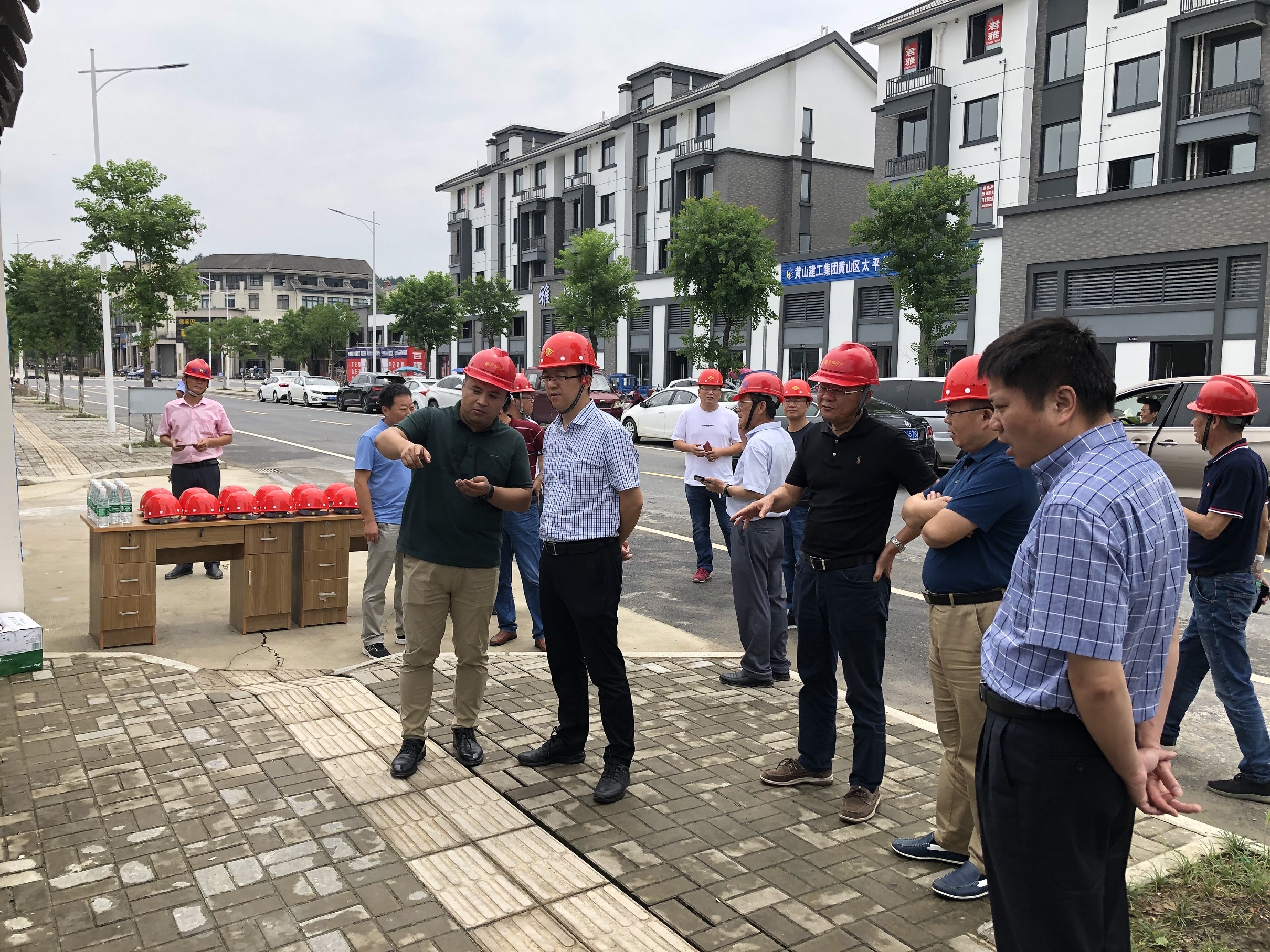 炎炎夏日,黃山建工承建的項目上一片繁忙景象。二〇二〇年七月二十九日上午十時許,黃山市副市長何毅在黃山市城投集團(tuán)副總裁朱愛民、詹凱、韓灶義等相關(guān)部門領(lǐng)導(dǎo)陪同下首先蒞臨了黃山建工集團(tuán)承建的太平故里項目考察調(diào)研。隨后驅(qū)車前往由黃山建工集團(tuán)承建的中儲糧黃山直屬庫遷建項目、爐渣(建筑垃圾)綜合利用項目調(diào)研。期間分別聽取了各項目實施單位的情況介紹和進(jìn)行了項目的實地考察,表示滿意。要求大家在抓進(jìn)度的同時,要確保安全,保證工程質(zhì)量,特別是高溫季節(jié)合理安排好作息時間,做好防暑降溫工作,保證一線人員身體健康。
