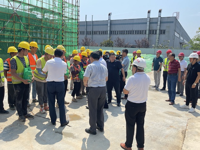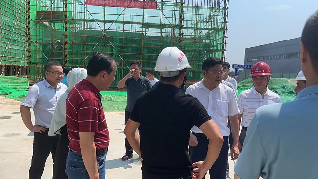 近日,黃山市天氣持續高溫酷熱,驕陽似火,黃山博盛消防裝備有限公司新廠區1-2#車間及研發中心工人仍堅守在施工一線,頂烈日,搶工期。7月26日上午,屯溪區委書記吳旭光、區委副書記、區長楊林,區人大常委會主任朱學軍,區政協主席袁震宇,區政協副主席杜祖紅等一行深入工地現場,開展“送清涼進工地”活動,看望慰問項目部一線職工。